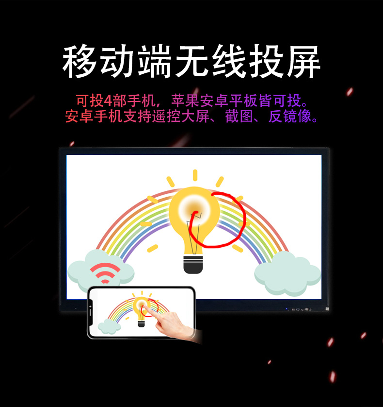 睡眠定時(shí)、關(guān)機(jī)記憶 支持遙控器代替鍵盤,實(shí)現(xiàn)F1~F12按鍵功能,遙控電視電源開機(jī)功能支持觸摸菜單,實(shí)現(xiàn)返回鍵、菜單操作、任務(wù)預(yù)覽、通道切換、音量調(diào)整、快捷電子白板操作等功能 支持在系統(tǒng)主頁面點(diǎn)擊任一信號源 支持遙控器童鎖功能 支持無線wifi,有線LAN 支持前置按鍵一鍵開關(guān)電腦、電視、一鍵電腦復(fù)位以及主頁鍵功能 支持嵌入式高清攝像頭拍照,錄像功能(需要選件支持) 前置HDMI、USB2.0、USB3.0、Touch接口,便于用戶使用產(chǎn)品咨詢